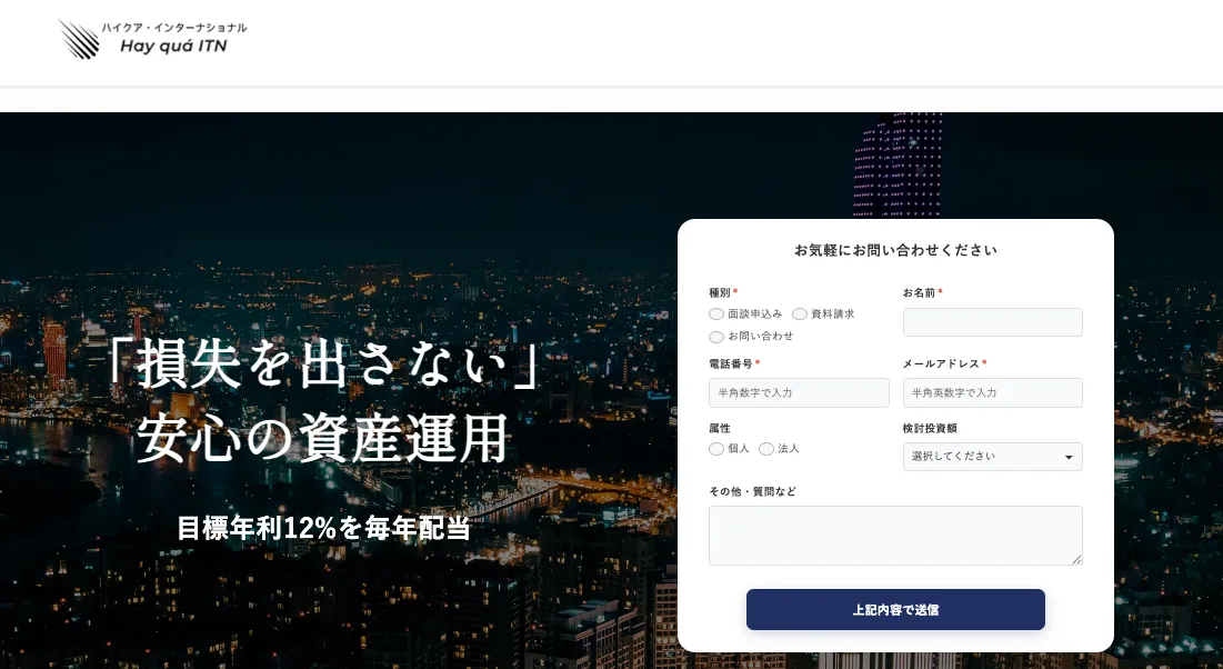 ハイクアインターナショナルに投資する前に、無料個別相談を受けることができます。