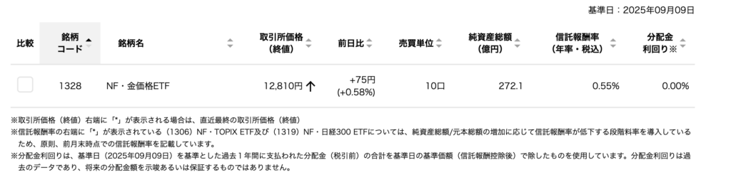 iシェアーズ ゴールドをおすすめする理由は、信託報酬が国内のその他の金ETFと比較して低いことです。