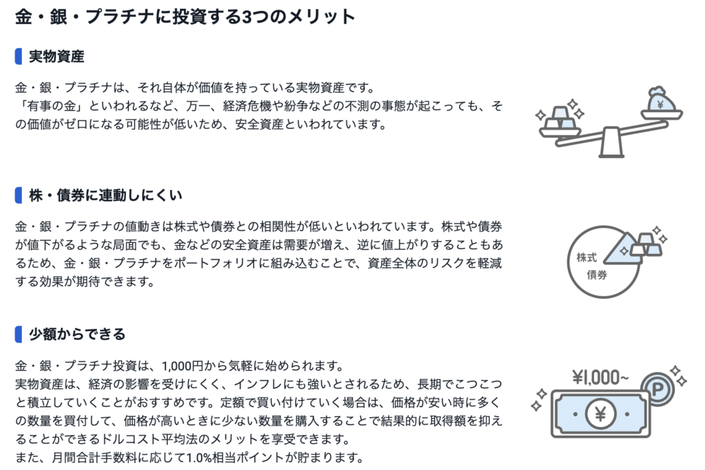 NISA成長投資枠にも対応予定ですので、長期的にコストを抑えた効率的な金投資を行いたい人におすすめです。