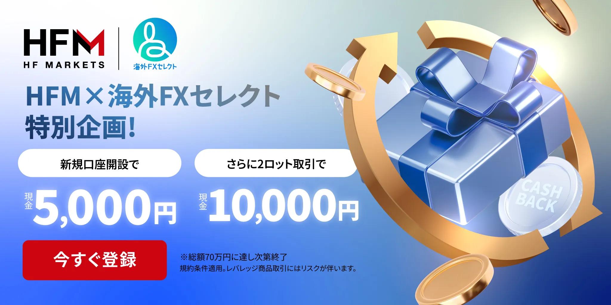 当サイトからのHFM新規口座開設で5,000円の口座開設ボーナスが受け取れます!